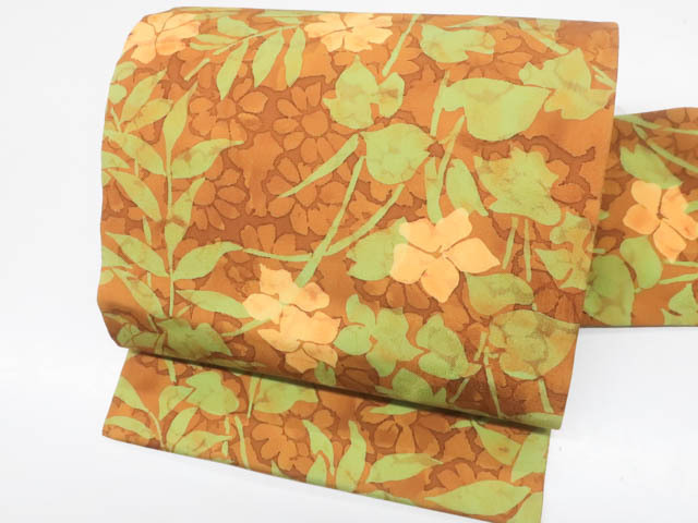 - 《京都一輝堂》【着物】九寸名古屋帯 全通 植物文 25b04-724