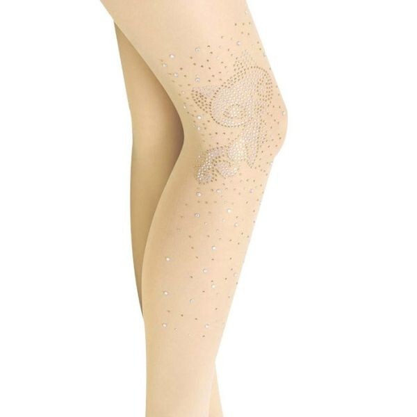 - ラインストン付きトレンカ キラキラ 80デニール レディース フリーサイズ ベージュ 狐柄