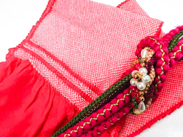 - 《京都一輝堂》【着物】 和装小物 帯締め 帯揚げ セット 帯締 帯揚 振袖用 総絞り 丸組 金糸 パール飾り付き 25w04-5109