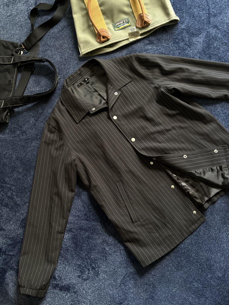 - 超美品 新品同様 定価25,300円 NO ID.(ノーアイディー) 高品質素材 ピンストライプ ジャケット size3(L) 秋冬大活躍