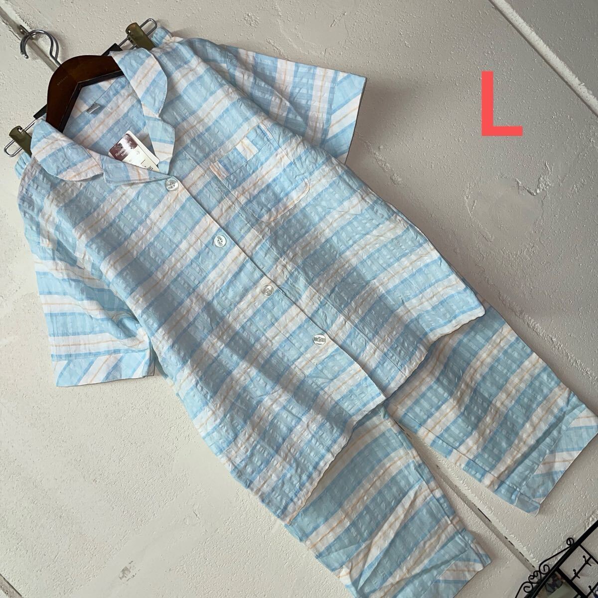- 訳ありLサイズサッカー素材半袖長ズボンパジャマ上下セットブルー