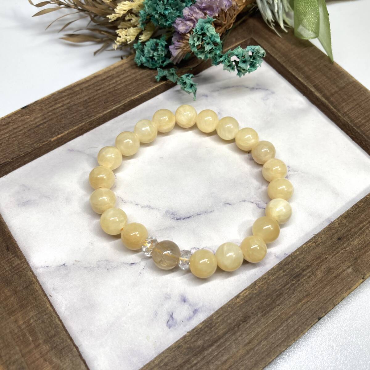 - アラゴナイト&ルチルクォーツブレスレット パワーストーン レディース 女性 金運 仕事運 開運 数珠ブレス お守り