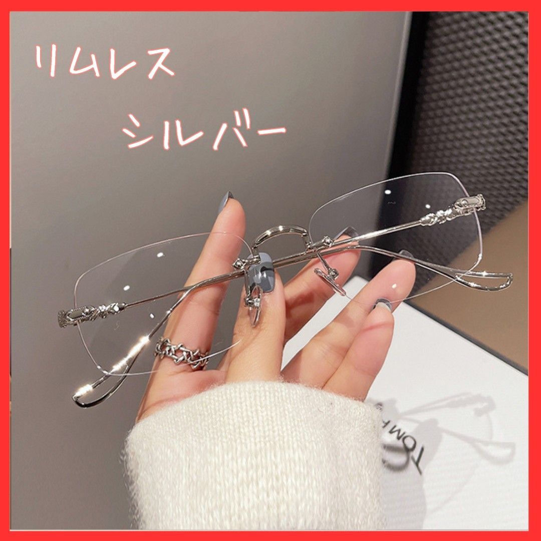 - リムレス メガネ シルバー y2k 韓国 ブルーライトカット 伊達メガネ