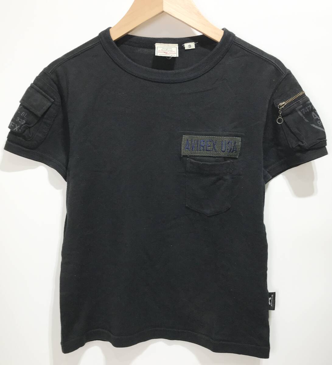 > AVIREX U.S.A. FATIGUE S/S T-SHIRT ファティーグ Tシャツ ミリタリー ブラック 6253016 アヴィレックス 古着 SIZE:S■0929I