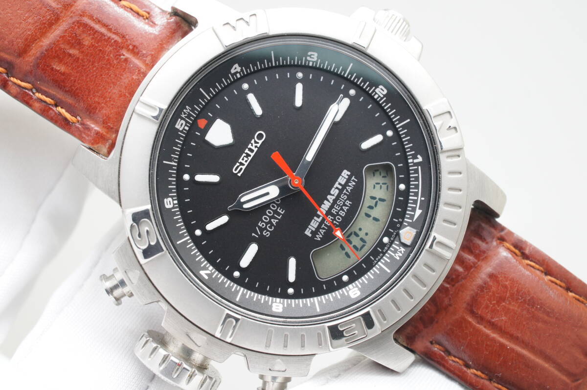 > Z102●作動良好 超美品 希少レア SEIKO セイコー FIELDMASTER フィールドマスター H801-6040 純正尾錠 メンズ腕時計 シルバー クォーツ