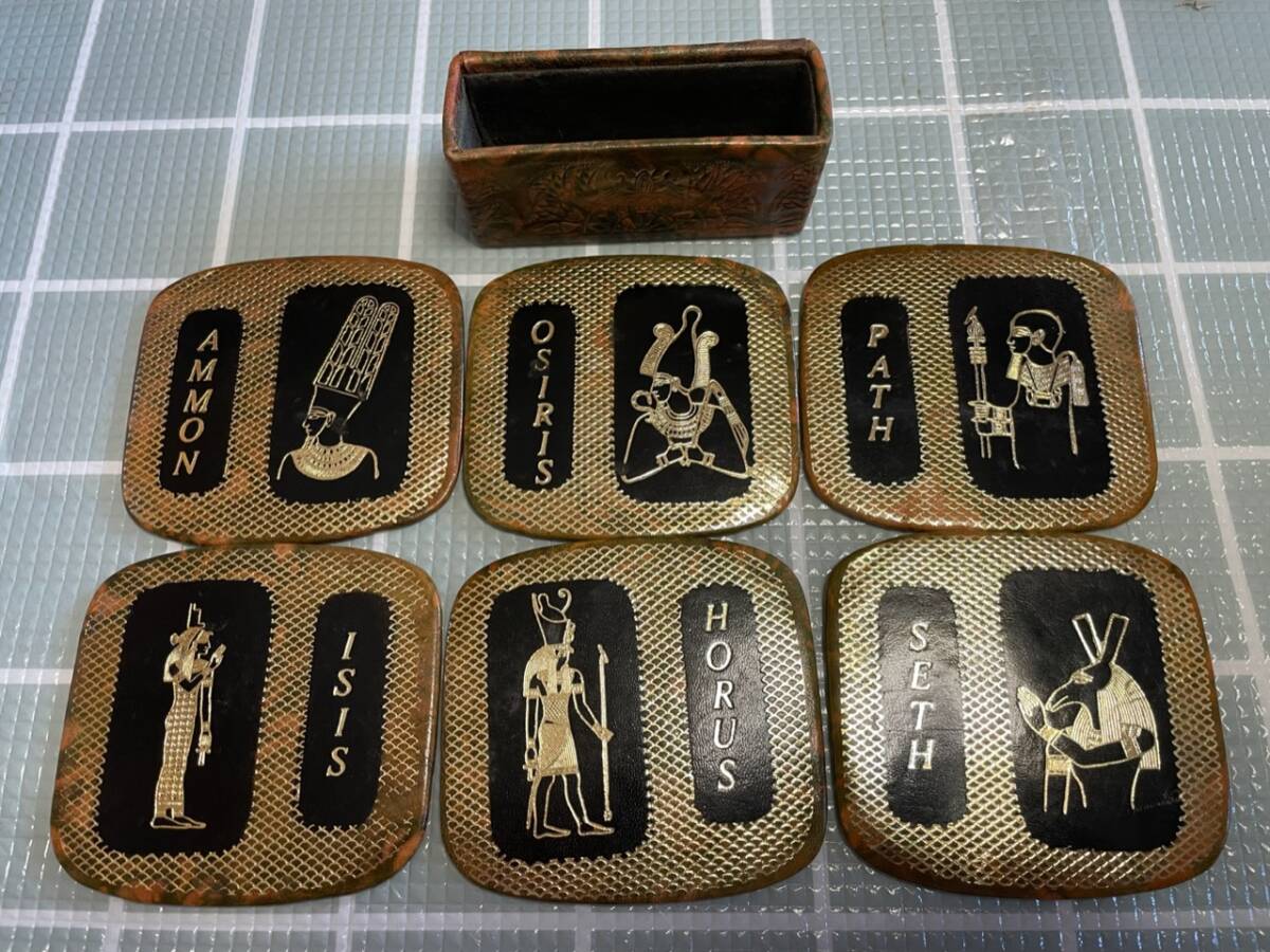 - エジプト コースター レトロ アンティーク 中古品 6枚セット