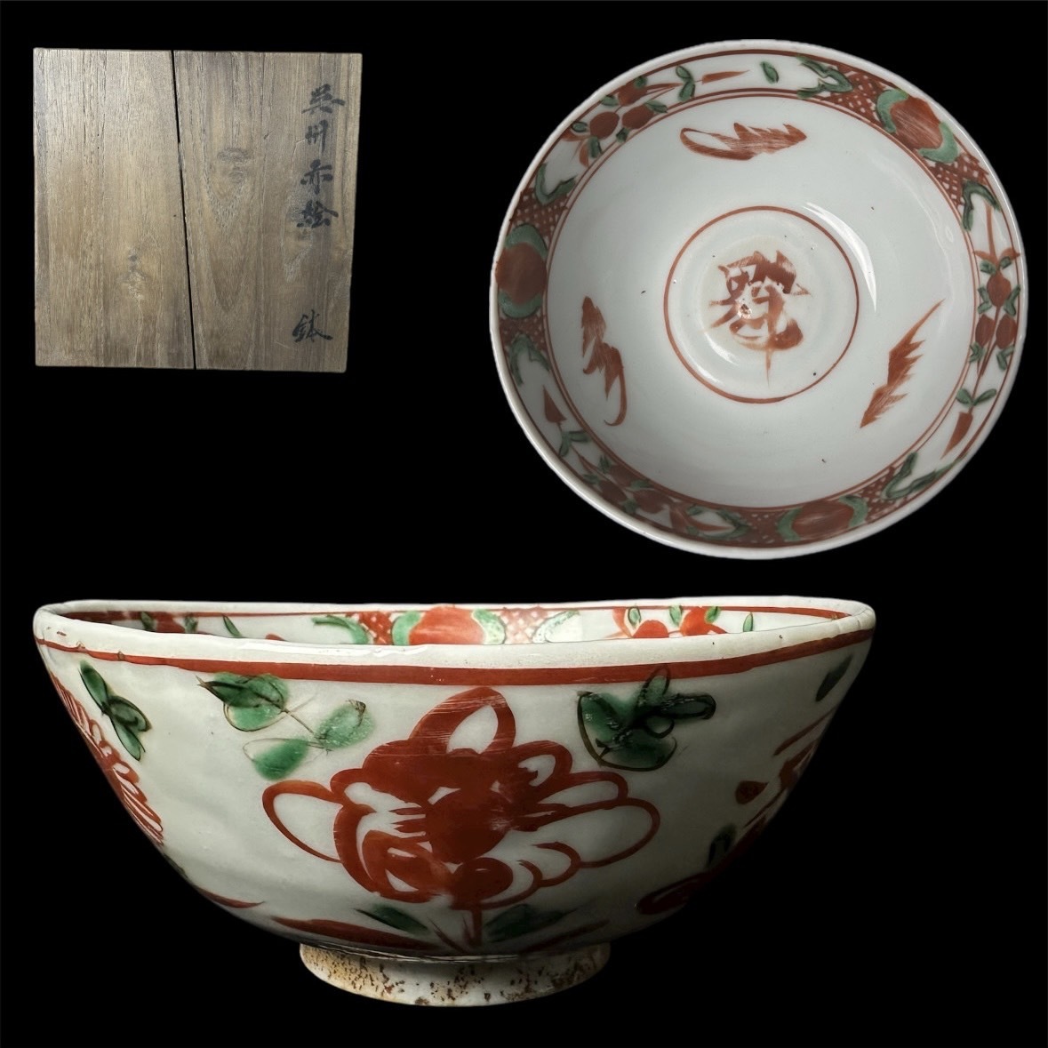 > コレクター買取品 中国美術 明時代 呉須赤絵 【魁】 鉢 唐物 唐草花紋 茶碗 食器 中国古玩 飾皿 置物 時代物