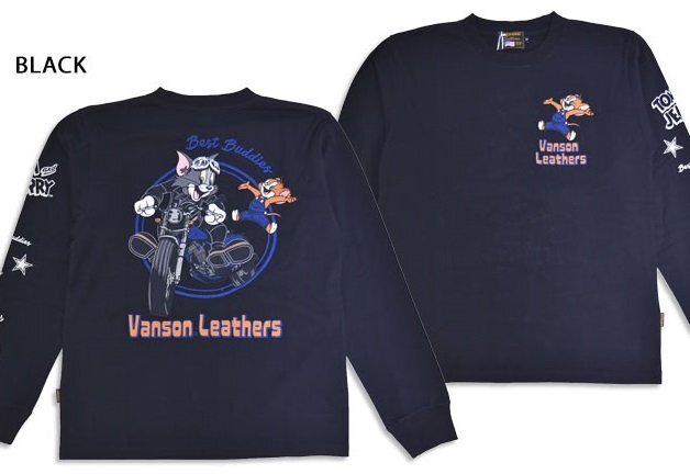 > TOM&JERRYコラボ 天竺ロングTシャツ◆vanson ブラック XLサイズ TJV-2530 バンソン ヴァンソン トムとジェリー 刺繍 長袖