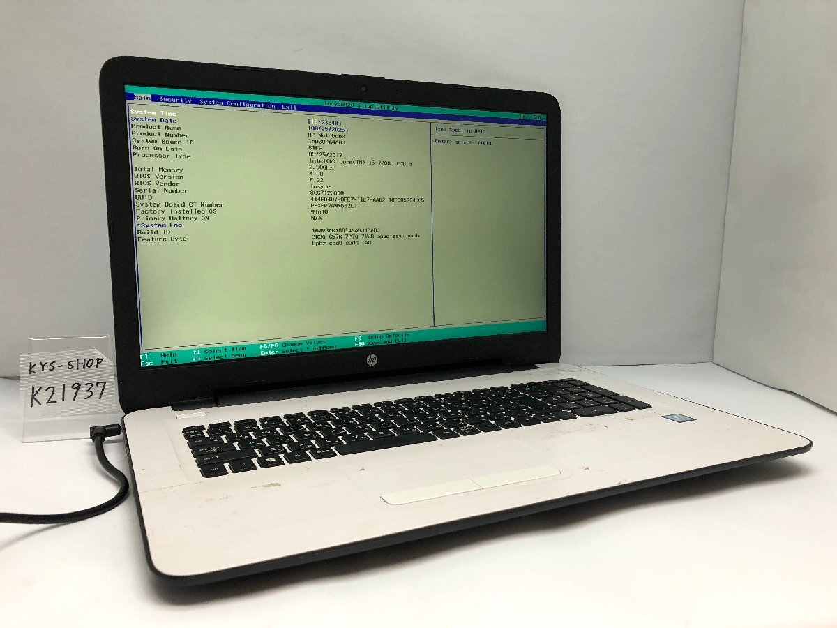 - ジャンク/ HP HP Notebook Intel Core i5-7200U メモリ4.1GB ストレージ無し 【K21937】