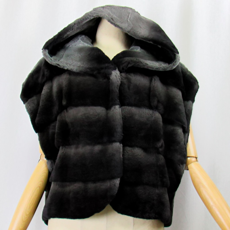 - ★毛皮/レッキスラビット/フード付きベスト/リアルファー/レディース レッキスベスト★
