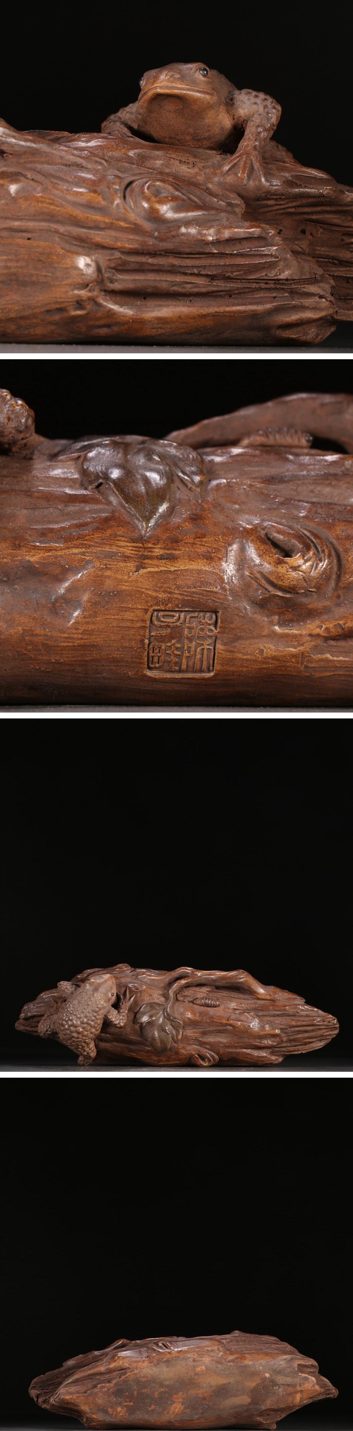 > 【清】時代舊藏 時代物 紫砂朱泥 陳子畦造 蛙紋筆架 書道具 時代物 古美術 骨董品7L9-BF6