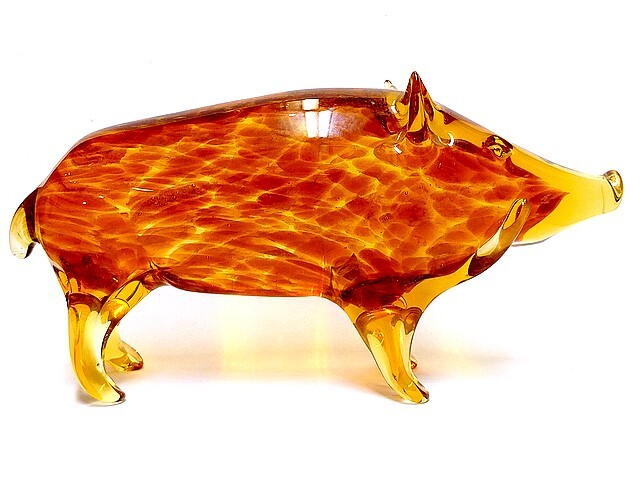 > 3QV売切!税無し☆ガラス製★イノシシ★亥★置物★干支★縁起物★琥珀色★ガラス工芸★コレクション★現状★現品限り★0926-5