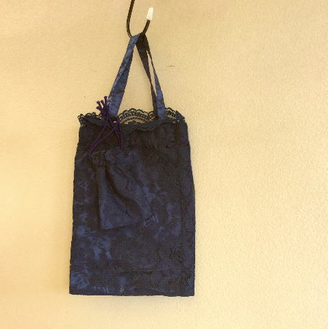 - 【入学、入園!】480円ネービーサテンとレースの親子巾着袋 【手作り小物】