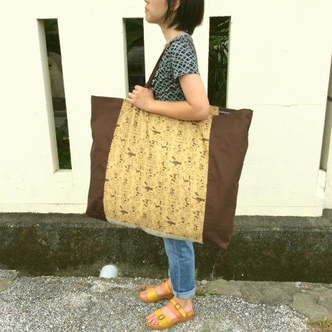 - 入学、入園!1900円落書きネコ(カーキ)布団バッグ手作り小物