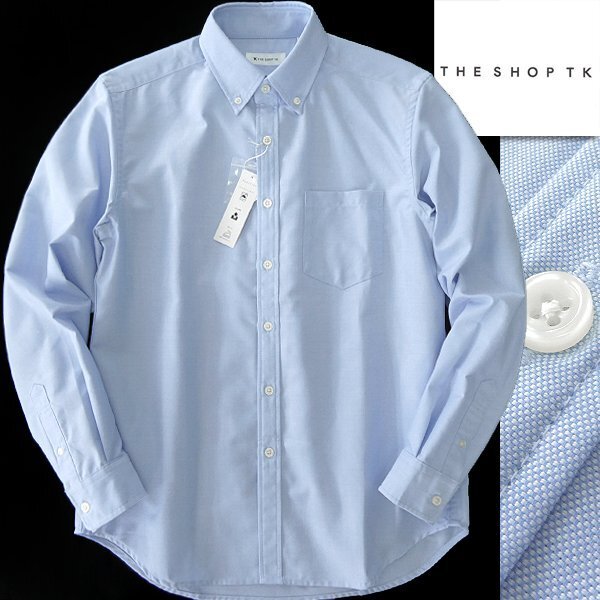 - 新品 タケオキクチ 瞬乾 オックスフォード ボタンダウン シャツ L 青 【I53895】 THE SHOP TK 秋冬 メンズ 防シワ 無地 サックス