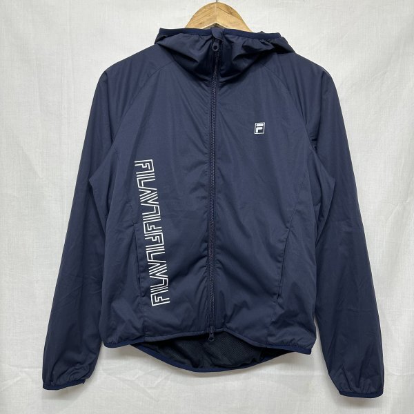 > FILA フィラ ロング スリーブ 長袖 フーディー フル ジップ アップ ジャケット M 紺 ネイビー スポーツ トレーニング ゴルフ ウェア b22448