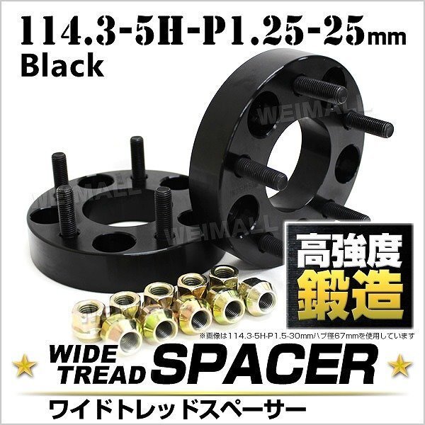 > Durax正規品 ワイドトレッドスペーサー 25mm 114.3-5H-P1.25 ナット付 黒1C 5穴 日産 スズキ スバル 2枚セット