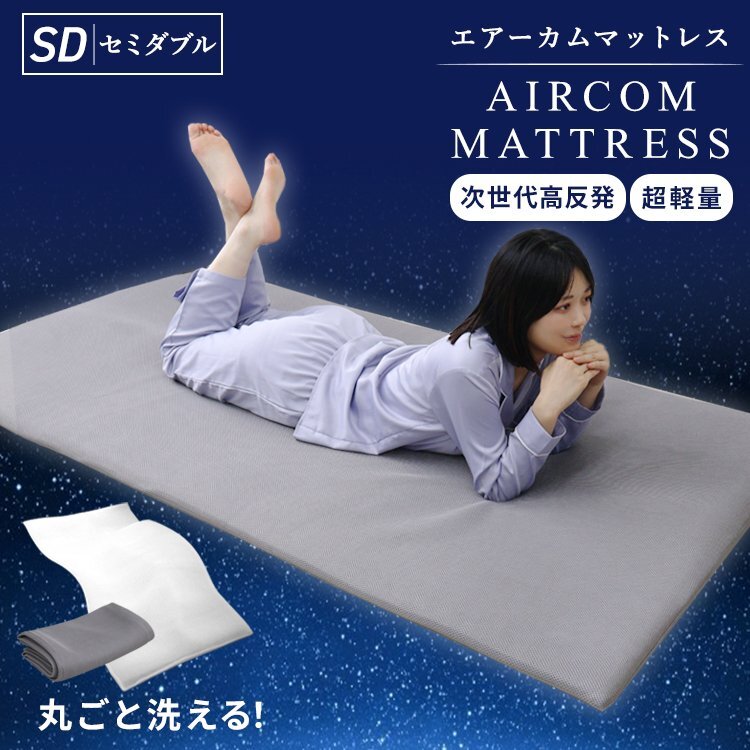> 【セミダブル カバー付】マットレストッパー マットレス 高反発マットレス メッシュ 通気性 洗える 敷きパッド 敷き布団 エアーカム