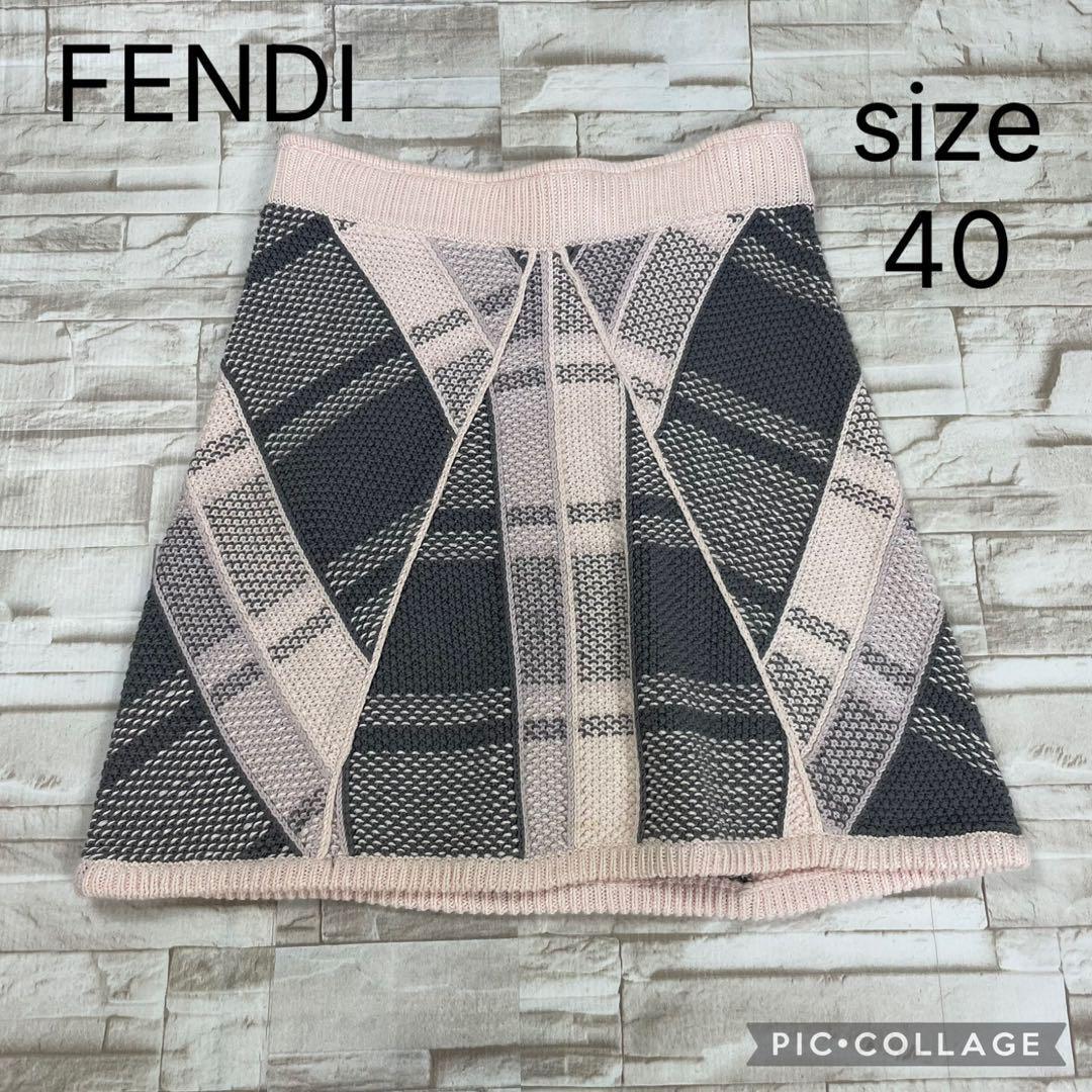 - 【良品】FENDI ★ニットスカート ミニ コットン チェック ピンク×グレー
