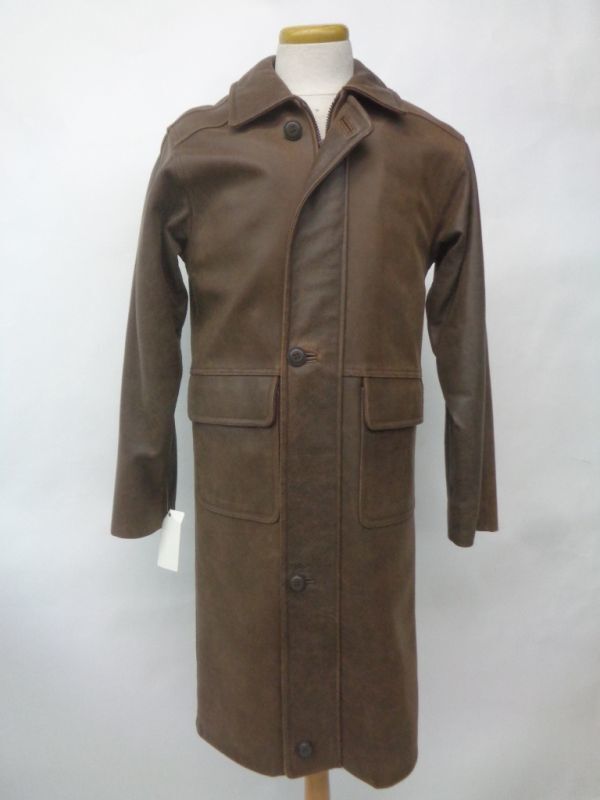 - メンズ ブラウン マットレザー・コート ウール裏地つき アメリカンサイズ36-38