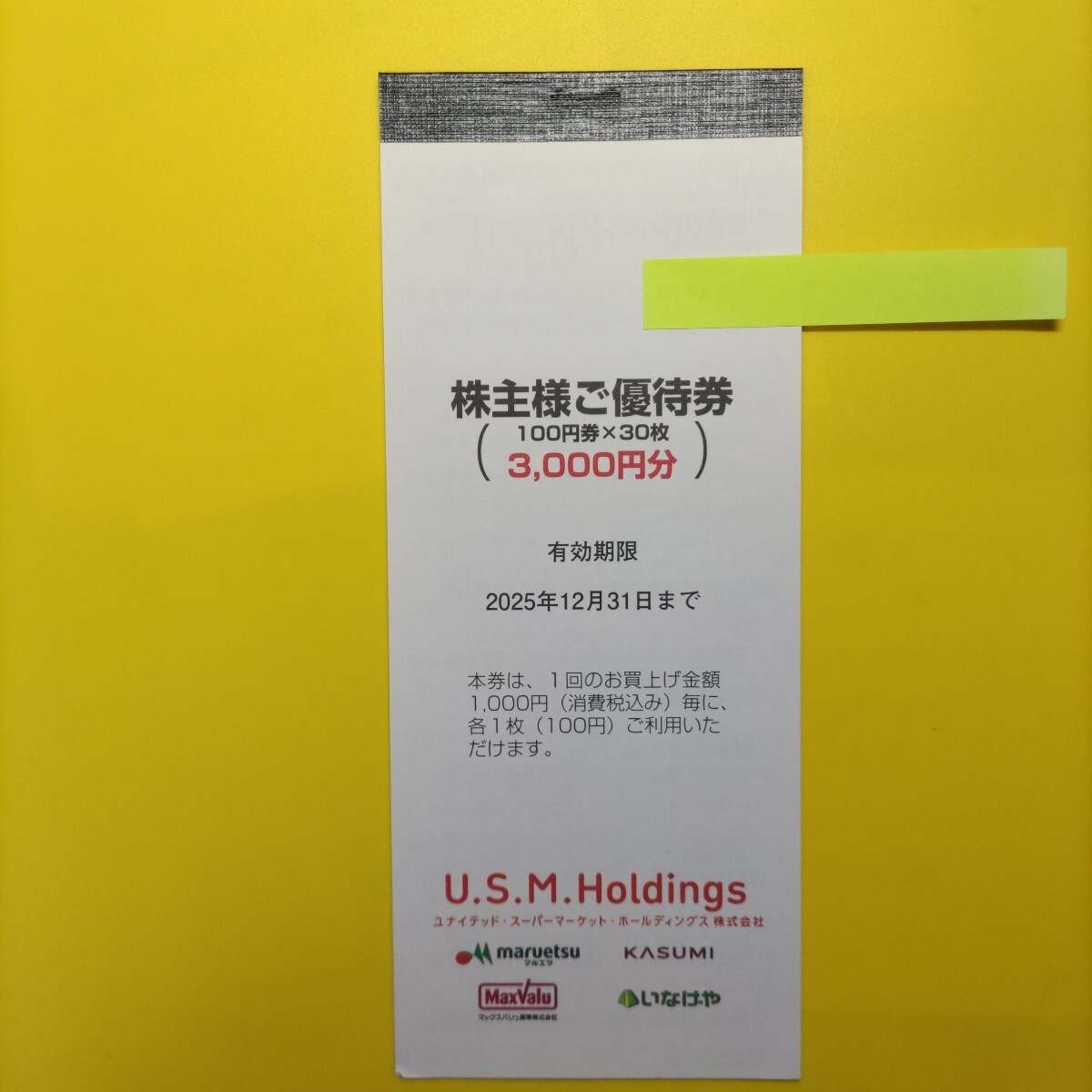 > USMH/ユナイテッドスーパーマーケット 株主優待券 お買物券3,000円分 マルエツ カスミ いなげや マックスバリュ関東