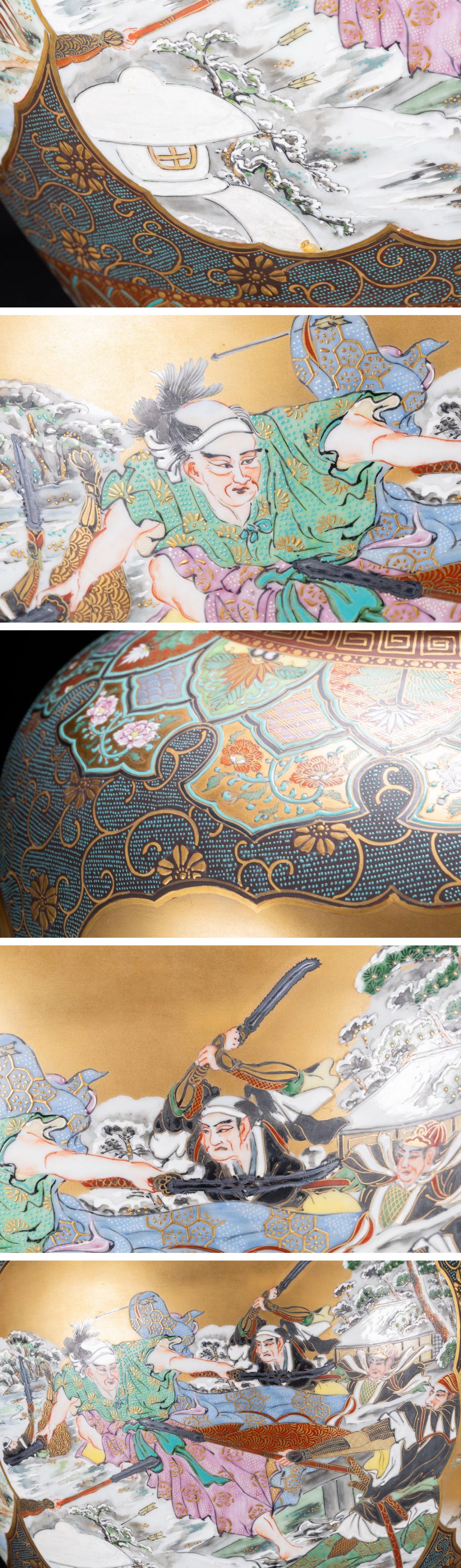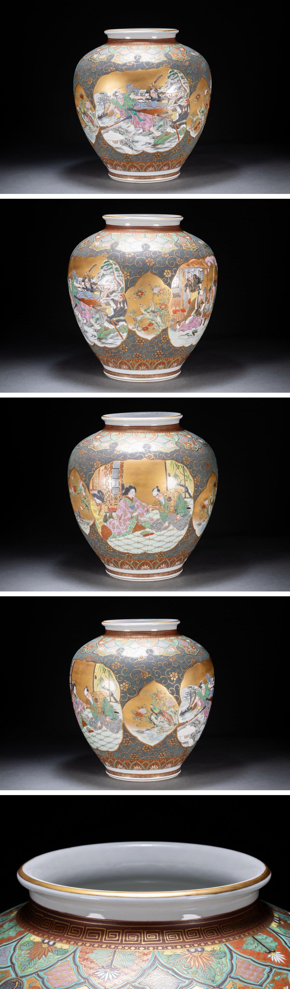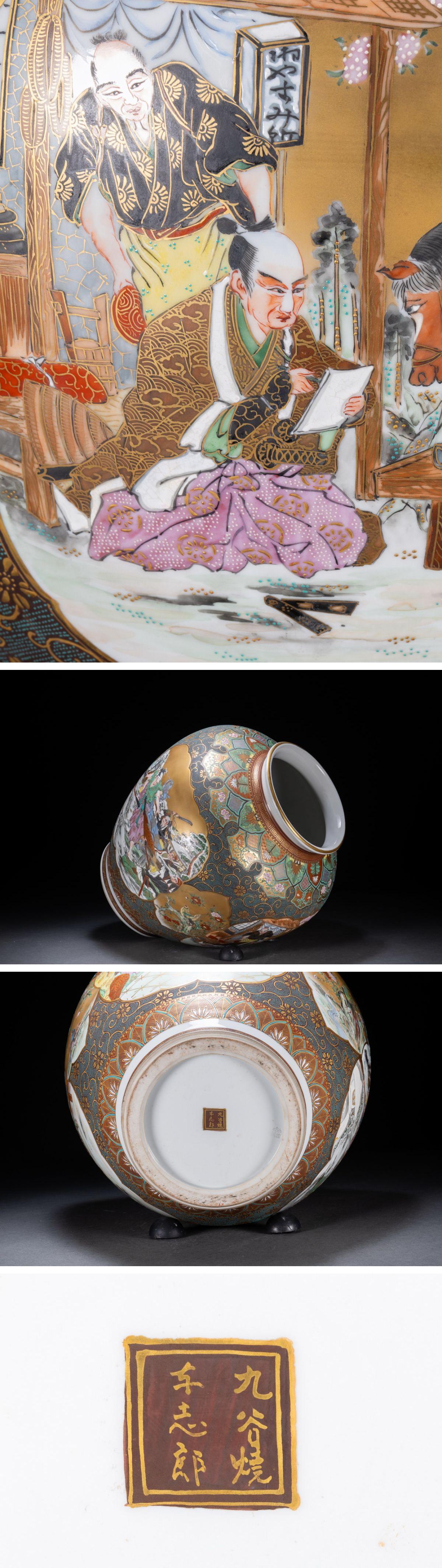 > 【珍品堂】某有名オークション購入 時代物 九谷焼 与志郎造 人物故事紋壺 古置物 古擺件 古美術 時代コレクション
