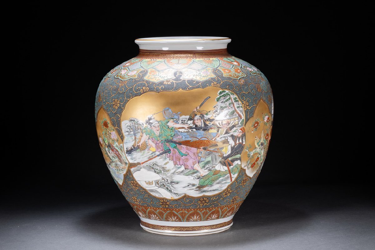 - 【珍品堂】某有名オークション購入 時代物 九谷焼 与志郎造 人物故事紋壺 古置物 古擺件 古美術 時代コレクション
