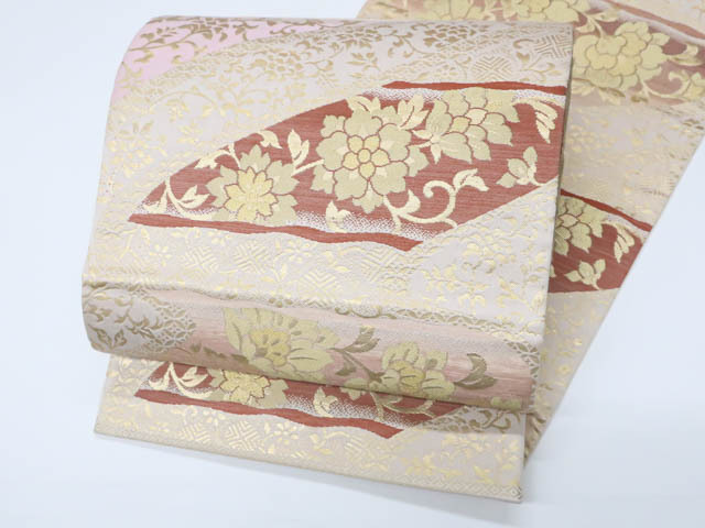 > 《京都一輝堂》リサイクル着物 袋帯 六通 金糸 唐花 正絹 25b08-1486