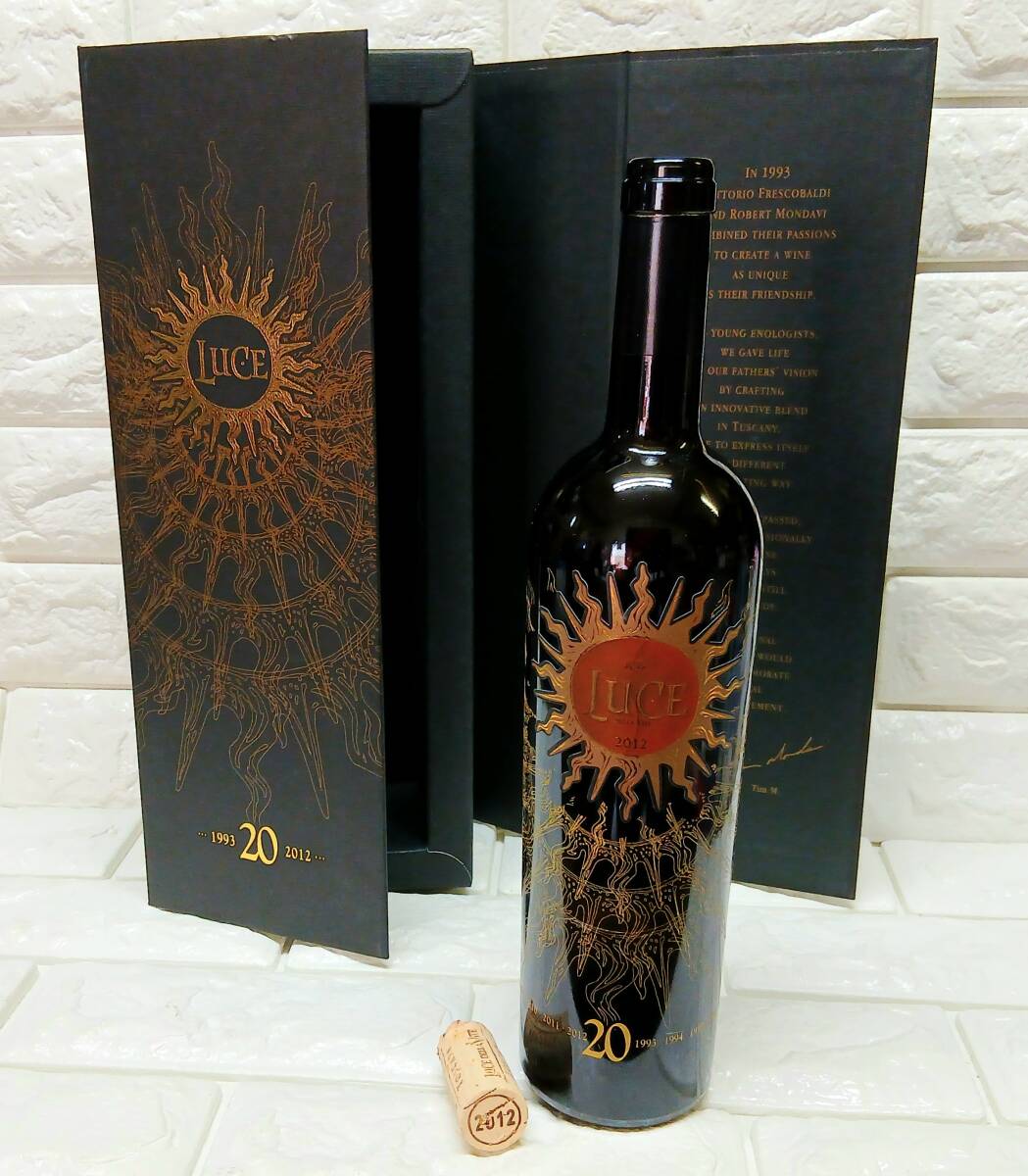 > n161 空ボトル【20周年記念ボトル 2012】LUCE (ルーチェ) DELLA VITT (デッラ ヴィーテ) 空瓶 コルク/箱付 コレクション/ディスプレイ用