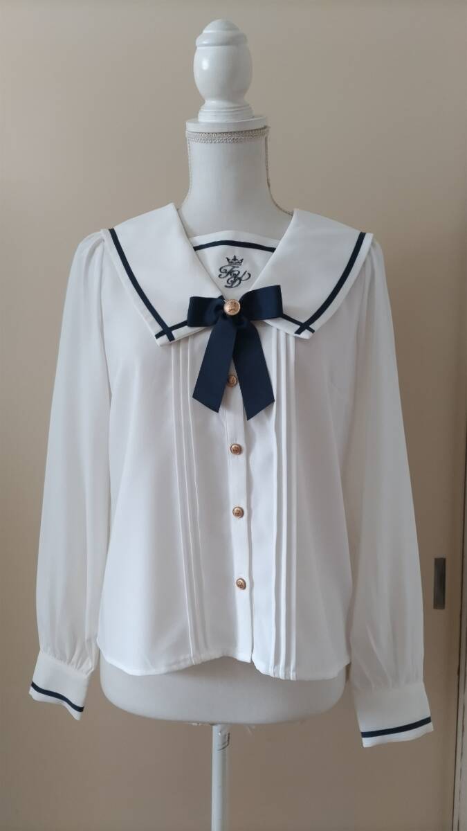 - No.5029_白セーラー襟ネイビーラインリボンブラウス