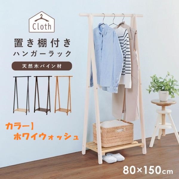 - 【送料無料】即決(限定品・新品)★天然木パイン省スペース置き棚付きハンガーラック80【ホワイトウォッシュ】