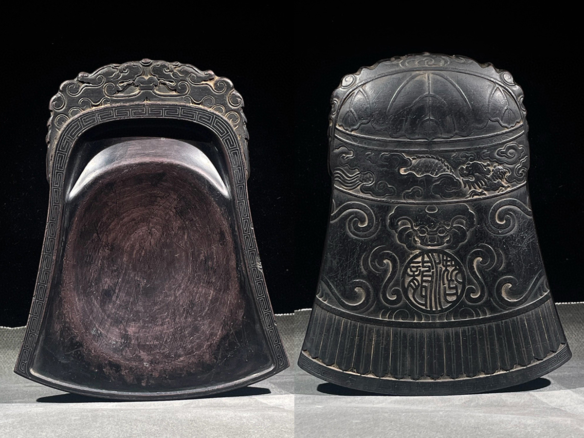 - ◆御泓軒◆『清時代 呉鴻銘 端石彫 府上有龍紋斧形硯 端渓硯』極細工・古賞物・中国古玩・中国古美術