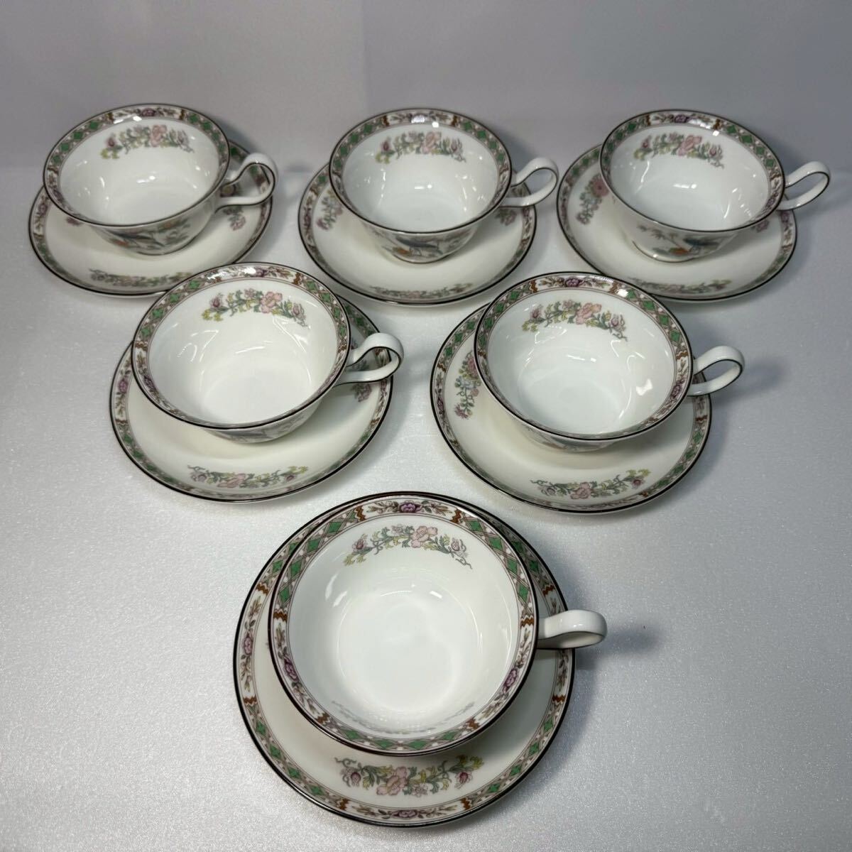 > 横-32 wedgwood 黒壺 クタニクレーン KUTANI CRANE ピオニー ペアカップ&ソーサー ウェッジウッド ヴィンテージ 廃盤品 九谷