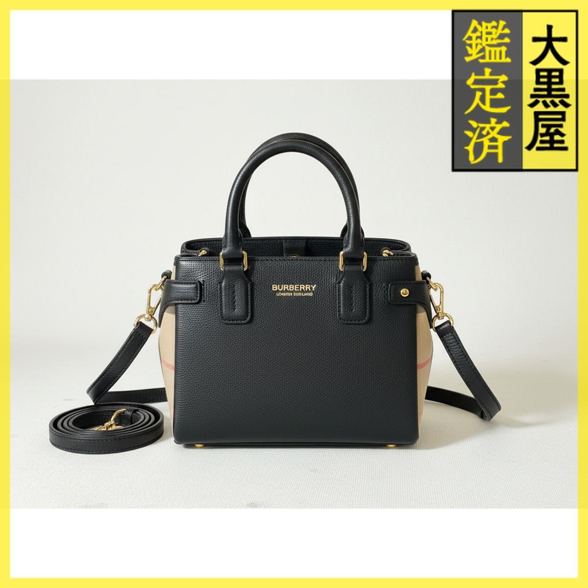 - BURBERRY ブラック レザー ハンドバッグ バーバリー ショルダーバッグ