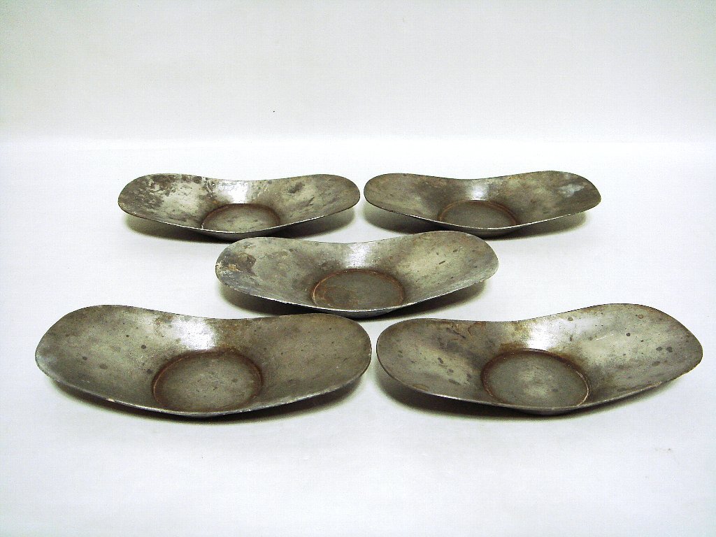 - Y156 古錫 茶托 5枚 煎茶道具 煎茶器 中国美術 唐物 古玩