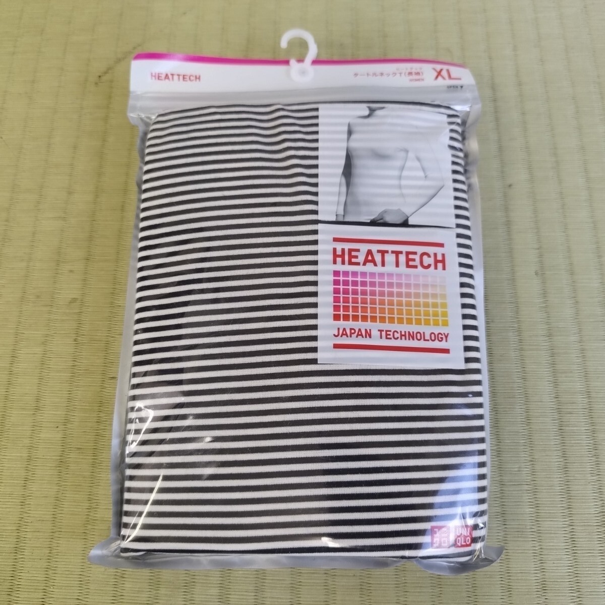 > 戸06d UNIQLO ユニクロ ヒートテック タートルネックT ボーダー 長袖 レディース Off White オフホワイト XLサイズ