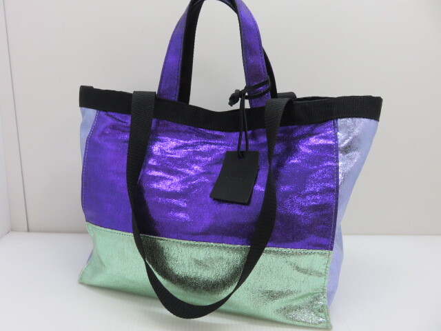 - POMTATA ポンタタ メタリック 2WAYショルダートートバッグ パープル×グリーン マルチカラー ○YR-07322○