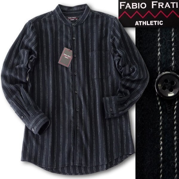 > 新品 ファビオフラーティ ストライプ 両面起毛 フランネル シャツ M 黒 【FF8W-H445_BK_M】 秋冬 FABIO FRATI 長袖 バンドカラー