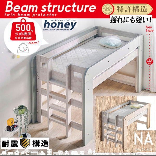 - ロフトベッド ハニー honey 高132cm BASIC 耐荷重500㎏ ベゼル耐震構造 特許取得 業務用 会社仮眠用 送料無料 WH-NAナチュラル