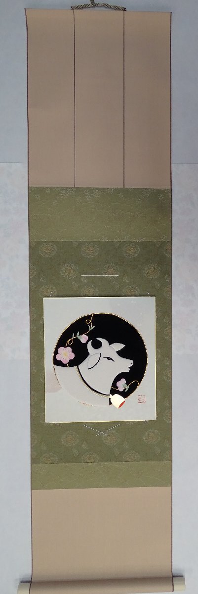 - ・作者: 領山押印有り ・画題: 牛 ・技法: 色紙絵(つまみ絵) /NO-R6-3-12.8