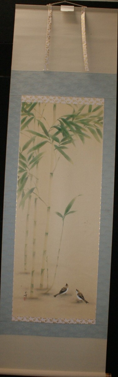 - ・作者名: 上村 米重 ・画題: 竹に雀 ・技法: 掛軸(直筆) 〈235〉A2-HIO-R4-6-25-89.8)