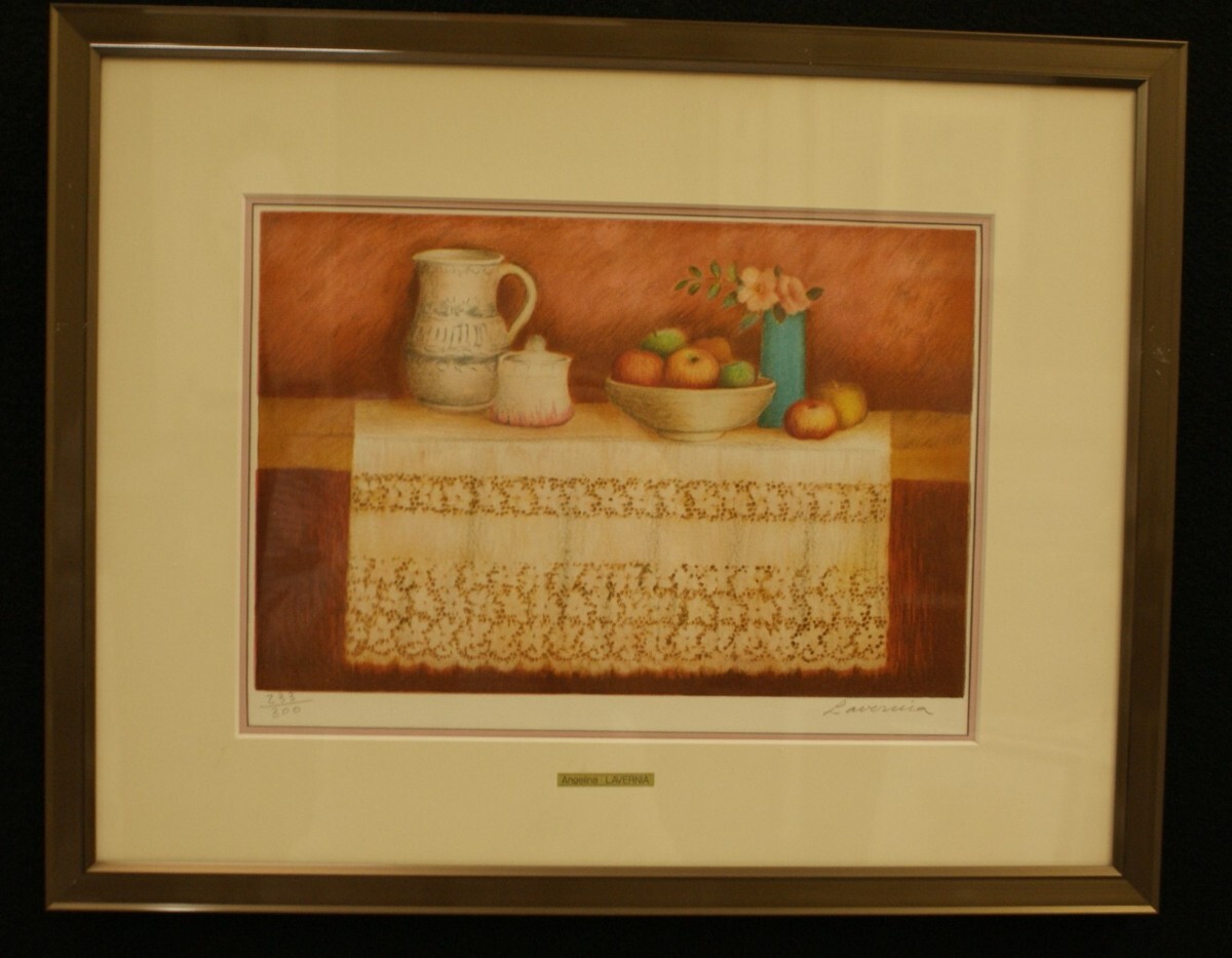 - 〈200〉アンジェリーナ・ラヴェルニア 作 「レースのテーブルクロス」(リトグラフ 23/300)