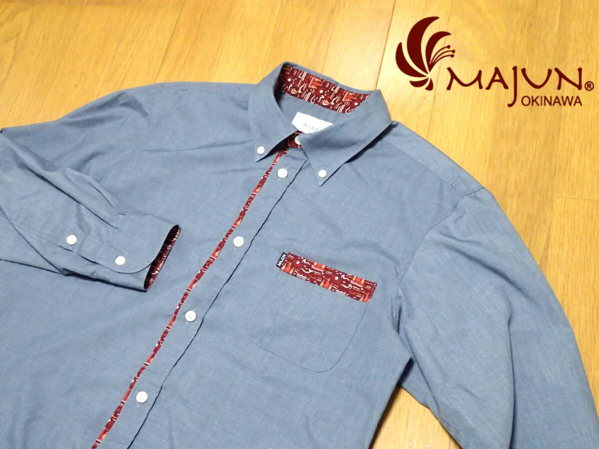 > ☆かりゆしウエア ☆MAJUN ☆マジュン ☆日本製 ☆ボタンダウンシャツ ☆カジュアルシャツ ☆インディゴ ☆メンズ ☆L