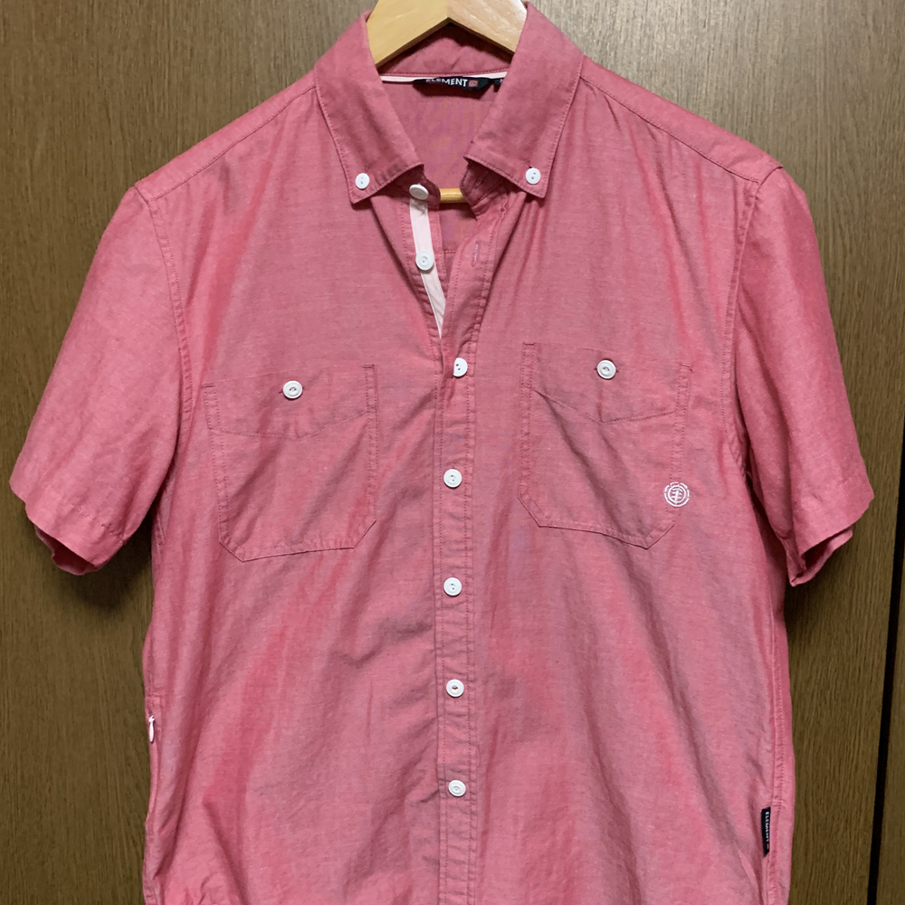 - M【ELEMENT|半袖BDシャツ】エレメント レッド系 半袖シャツ ボタンダウン