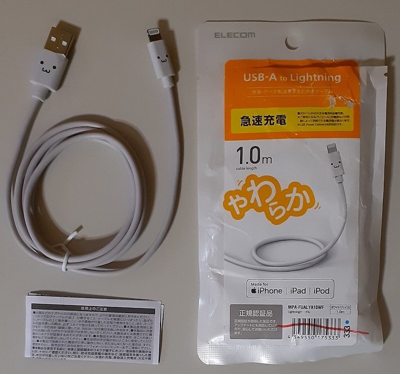 - 6758 MPA-FUALYA10WF ELECOM やわらかLightningケーブル USB-A - Lightning 1.0m ホワイト 急速充電 正規認証品