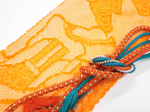- 《京都一輝堂》リサイクル着物 和装小物 帯締め 帯揚げ セット 帯締 帯揚 振袖用 総絞り 金糸 丸組 飾り付き 25w07-9008