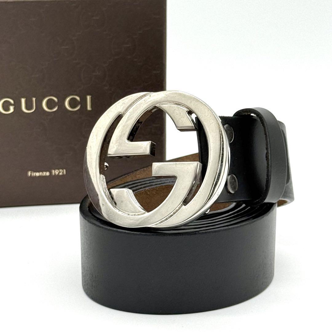 - 【美品】GUCCI グッチ インターロッキング ベルト 冠婚葬祭 フォーマル シンプル シルバー メンズ レディース ユニセックス GE000308