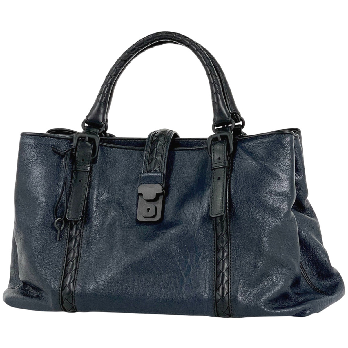- ボッテガヴェネタ BOTTEGAVENETA イントレチャート ハンドバッグ トートバッグ レザー ネイビー ブラック レディース 【中古】