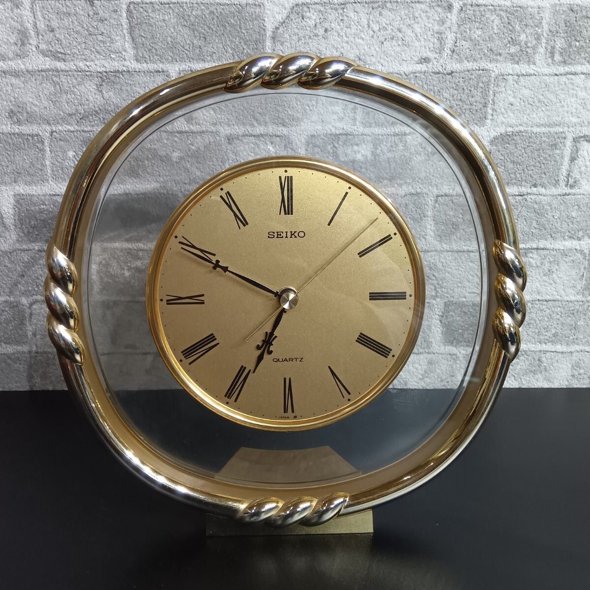 - HS-016 SEIKO セイコー クォーツ QUARTZ 動作確認済み ゴールド 置き時計 アンティーク