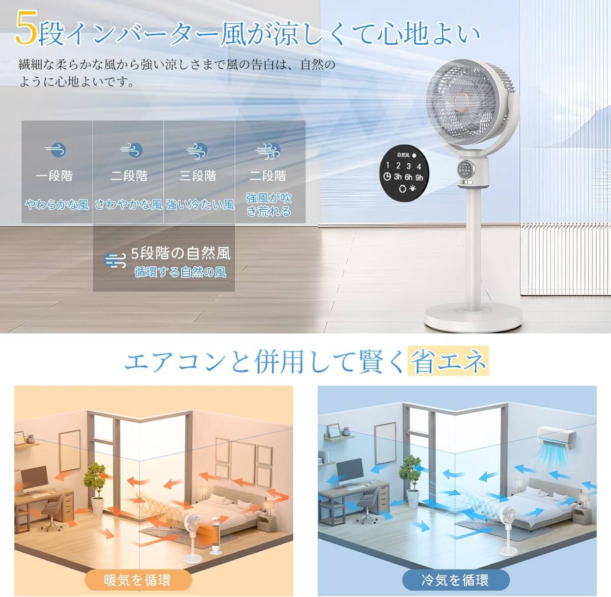 - サーキュレーター 扇風機 DCモーター 静音 リビング扇風機 高さ調節可能